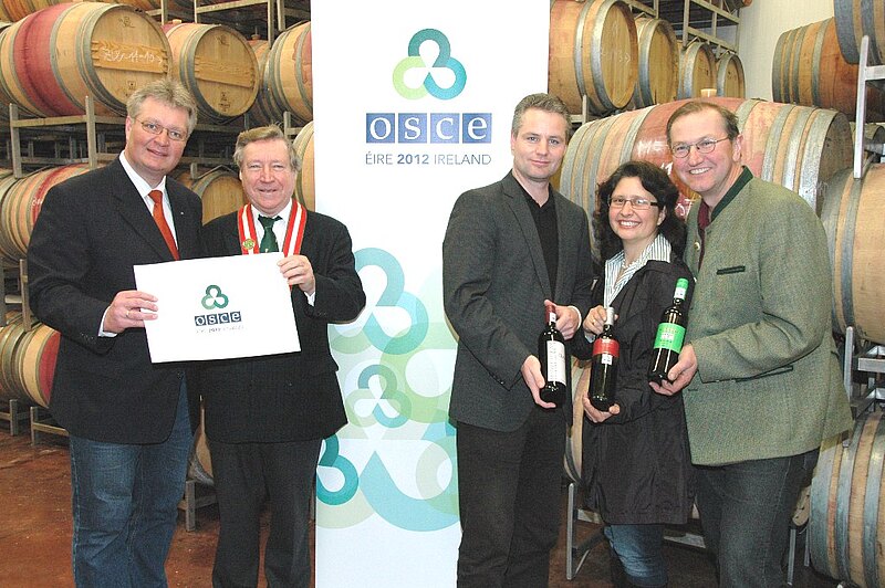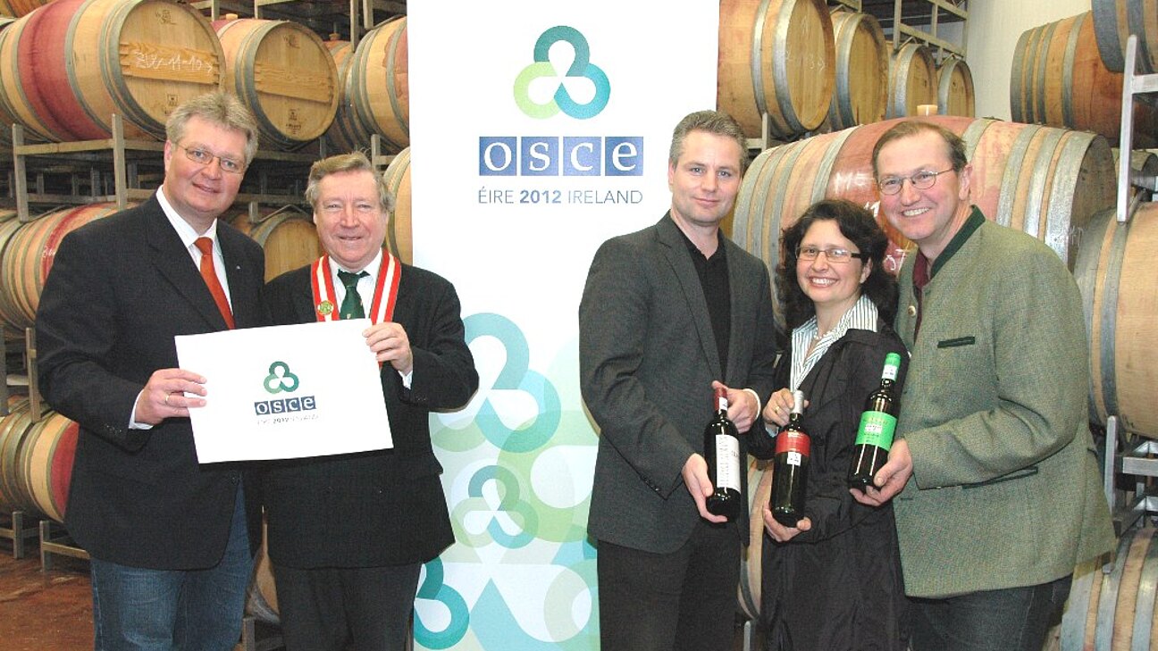 Seit über 30 Jahren werden Weine der Thermenregion auf vielen Botschaften den Gästen kredenzt Als großer Erfolg kann man es bezeichnen, daß die OSZE sowohl unter der litauischen als auch der irischen Präsidentschaft 2012, das ganze Jahr über die Weine von über 10 Topwinzern unserer Region serviert. Auch die Dänische Präsidentschaft vertraute dem Rat von Walter Götz und kaufte in der Thermenregion für ihr Halbjahr die Weine ein. Die Weingüter Aumann, Alphart, Schafler, Auer, Gebeshuber, Märzweiler, Strasser etc. sind dabei besonders gefragt. Über 50 Nationen genießen die hervorragenden Weine der Region in Wien und waren beim Gipfeltreffen im Schlosshotel Weikersdorf 2010 und 2011 von den Perlen der Thermenregion restlos begeistert. Der Motor dahinter ist "Weinritter" Walter Götz, der schon in 30 Jahren zu allen Weinfesten und Weintaufen Exzellenzen von Amerika bis Russland in die Thermenregion brachte. BR Bgm Christoph Kainz: "Mit der Organisation der Genussmeile Thermenregion konnten wir einen weiteren wichtigen Meilenstein für die Thermenregion setzen."Kainz begrüßt regelmäßig Botschafter aller Herren Länder bei den regionalen Topwinzern. Auch viele Minister und Premierminister sowie UN Generalsekretär BAN Ki-moon, damals noch als koreanischer Botschafter, waren schon zu Gast in Baden und Umgebung. Walter Götz motivierte auch die in Wien akkreditierten Militärattachés von Albanien bis Zypern ihr Wintertreffen im Streiterhof in Baden abzuhalten - erstmals in der Geschichte. Nun reihte sich auch die OSCE anlässlich ihrer 15-Jahr-Feier dem prominenten Reigen an und übernahm offiziell Weine der Thermenregion in ihr kulinarisches Programm.